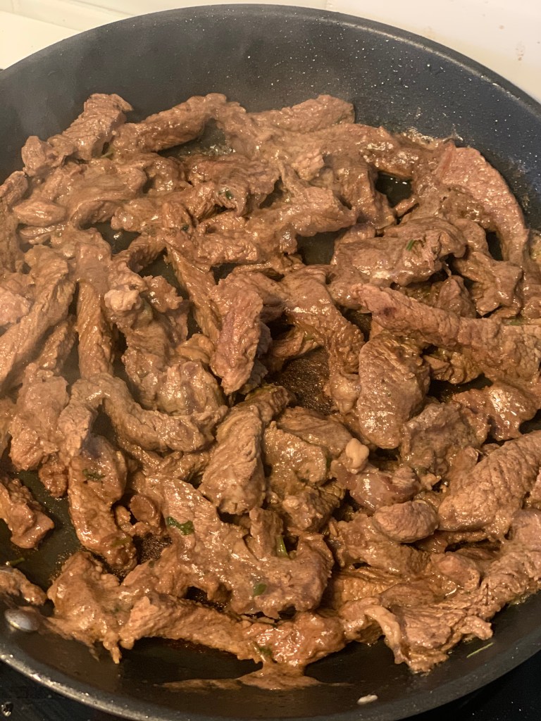 - Hetta upp matfett i en stekpanna. Stek köttet. Köttet ska stekas och inte kokas. Rör om med jämna mellanrum tills att det får en fin färg.
